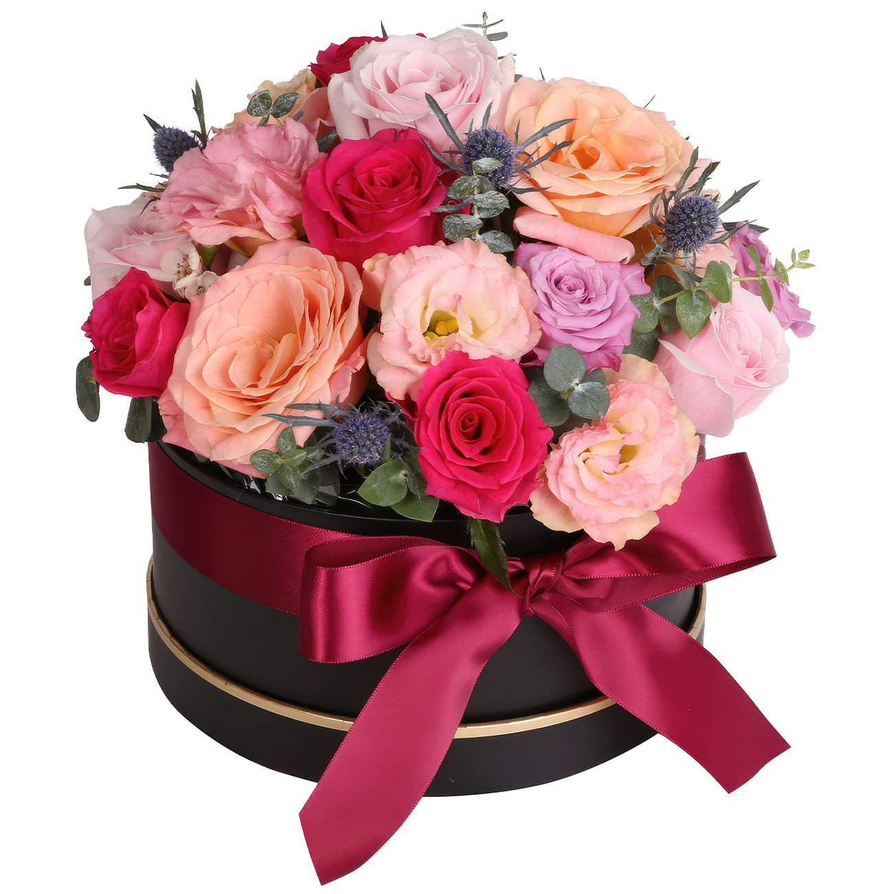 Цветы в коробке «Шедевр натуры» с доставкой по г Псков: вы можете заказать букет в супермаркете цветов «Флормания» по цене от 2990 руб.